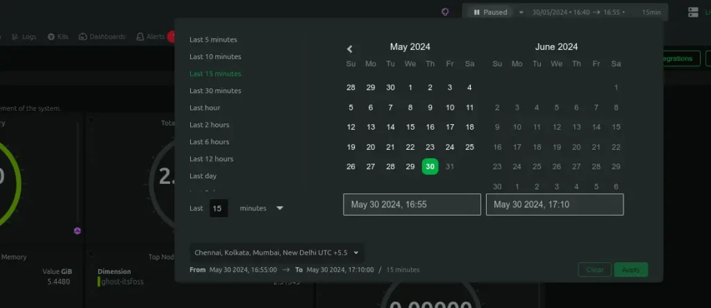 - Tùy chỉnh khoảng thời gian xem lịch sử